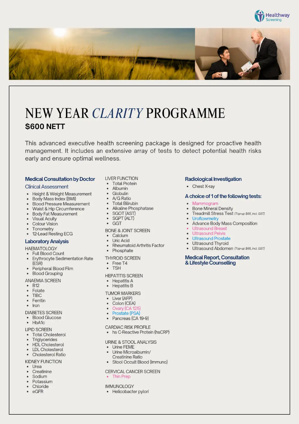 Designed to help you begin the year with a strong health baseline, the New Year Clarity Programme offers a curated screening experience in a comfortable and private setting, guided by our medical team.